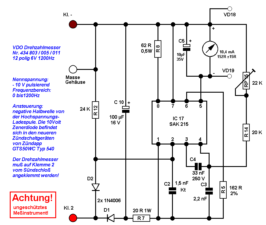 » Ohne genaue Innenschaltung des Drehzahlmessers wird Dir hier wahrscheinlich