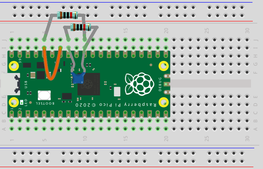 Begrenzte Auflösung und Genauigkeit des ADC: Der ADC (Analog-Digital-Converter) im Raspberry Pi Pico hat eine nominale Auflösung von 12 Bit (4.096 Stufen). In MicroPython wird der Wert auf 16 Bit (65.536 Stufen) interpoliert.
